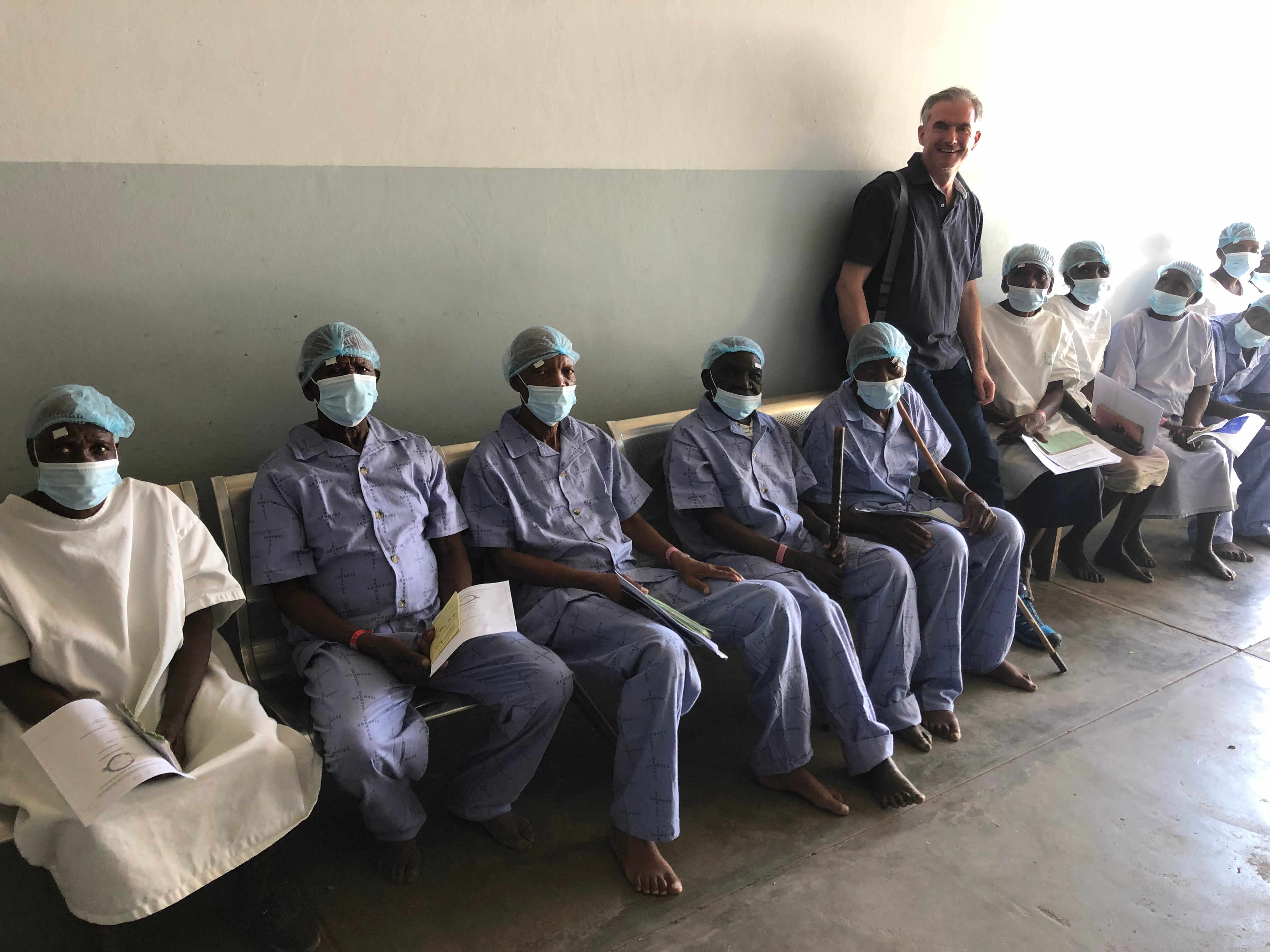 Da wir in Rundu bereits 7x operiert hatten, waren uns die lokalen Begebenheiten bestens bekannt. Wie immer höchst professionelles Vorbereiten durch die Clinical Ophthalmic Assistents (OP-Mikroskope, auch das neu angeschaffte Zeiss Lumera 300 kam rechtzeitig an, Autoklaven, Biometrie, Einverständniserklärung mit Fingerabdruck) und Verabreichung der Lokalanästhesie durch Optometristen aus Namibia erleichterten die Arbeit und deren Beginn sehr. Dr E vd Merwe, Dr One Phillips und Dr Shemba hatten bereits am Samstag zu operieren begonnen. In Summe wurden 450 Augen operiert, ein sehr gutes Ergebnis (Prof Reitsamer Phako, alle anderen Chirurgen ECCE). Leider gab das neue Mikroskop am 2. Tag seinen Geist auf: zwar ein grünes Lämpchen für Strom, der aber nicht bis zu den Lichtdioden weitergeleitet wurde.